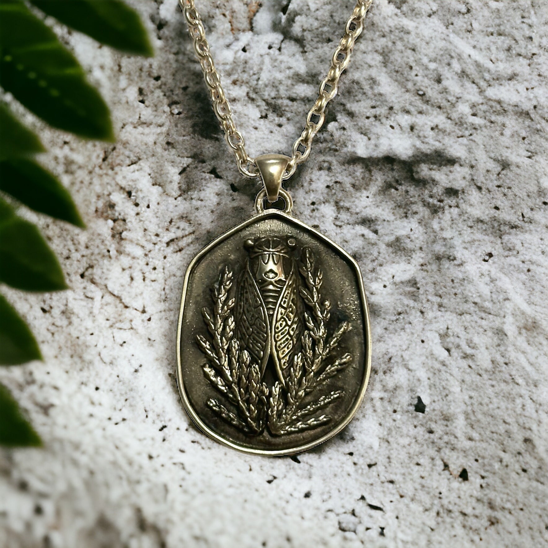 Get ready to make a statement with our Cicada in Juniper Shadowbox Necklace! This high relief necklace features a Cicada nestled in a spray of juniper - perfect for entomology fans. Add a touch of uniqueness to your wardrobe with this quirky and stylish piece.